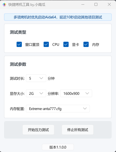 多烤时会优先启动Aida64,延迟10秒启动其他测试